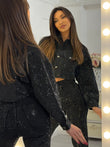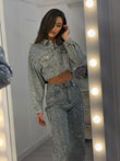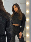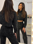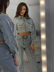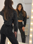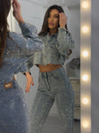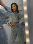 Shine bright in this Silver Sequin Denim Crop Jacket & Pants Set. The sparkling sequins and cropped jacket create a trendy, eye - catching look. Perfect for parties or nights out. Lightweight design ensures fast page load. Shop now for a glamorous, head - turning outfit!