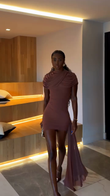Crafted from lightweight stretch fabric, this dress offers comfort and freedom of movement while maintaining a flattering silhouette.
