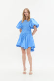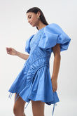 Baby Blue Puff - Sleeve Ruched Mini Dress