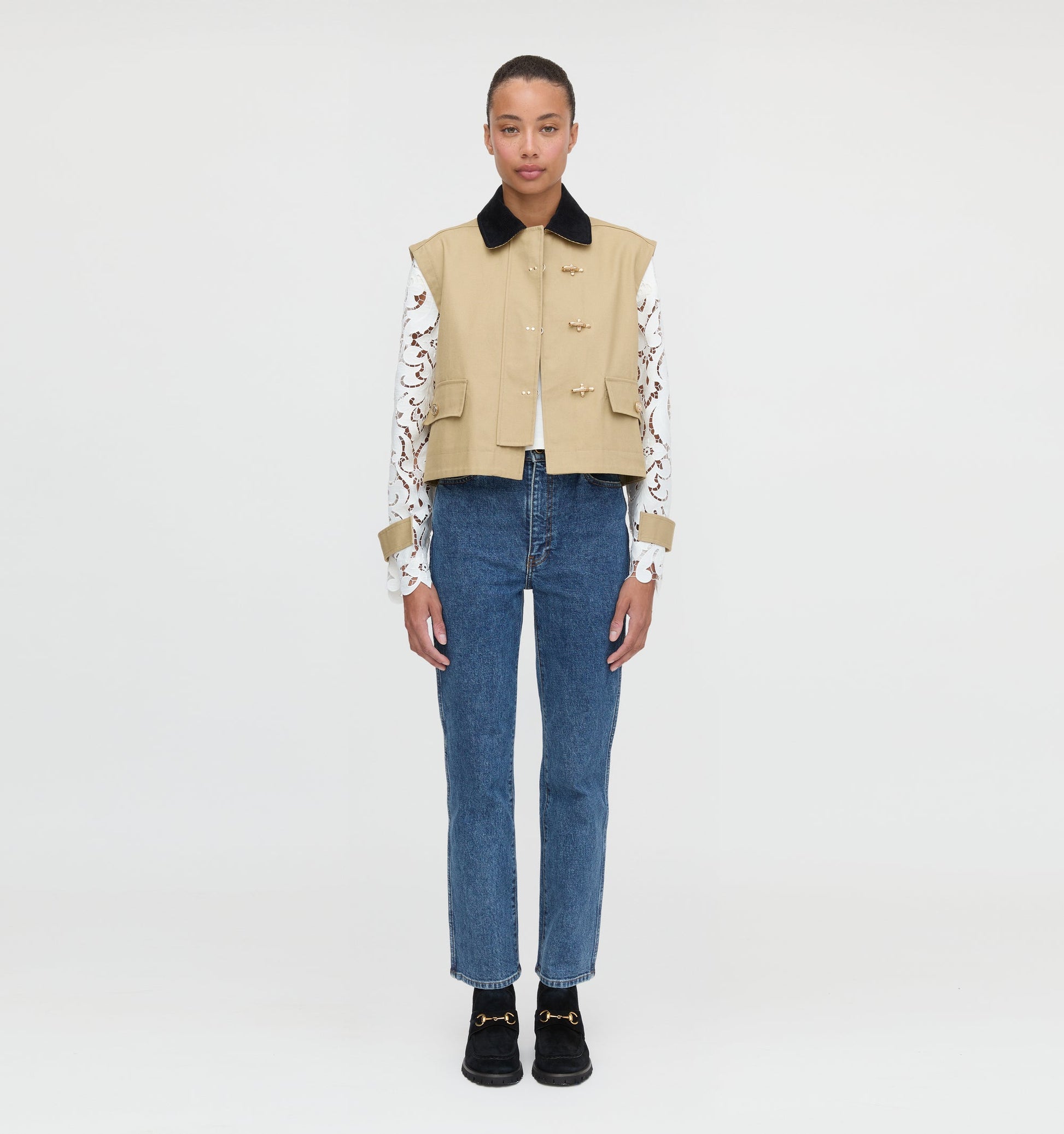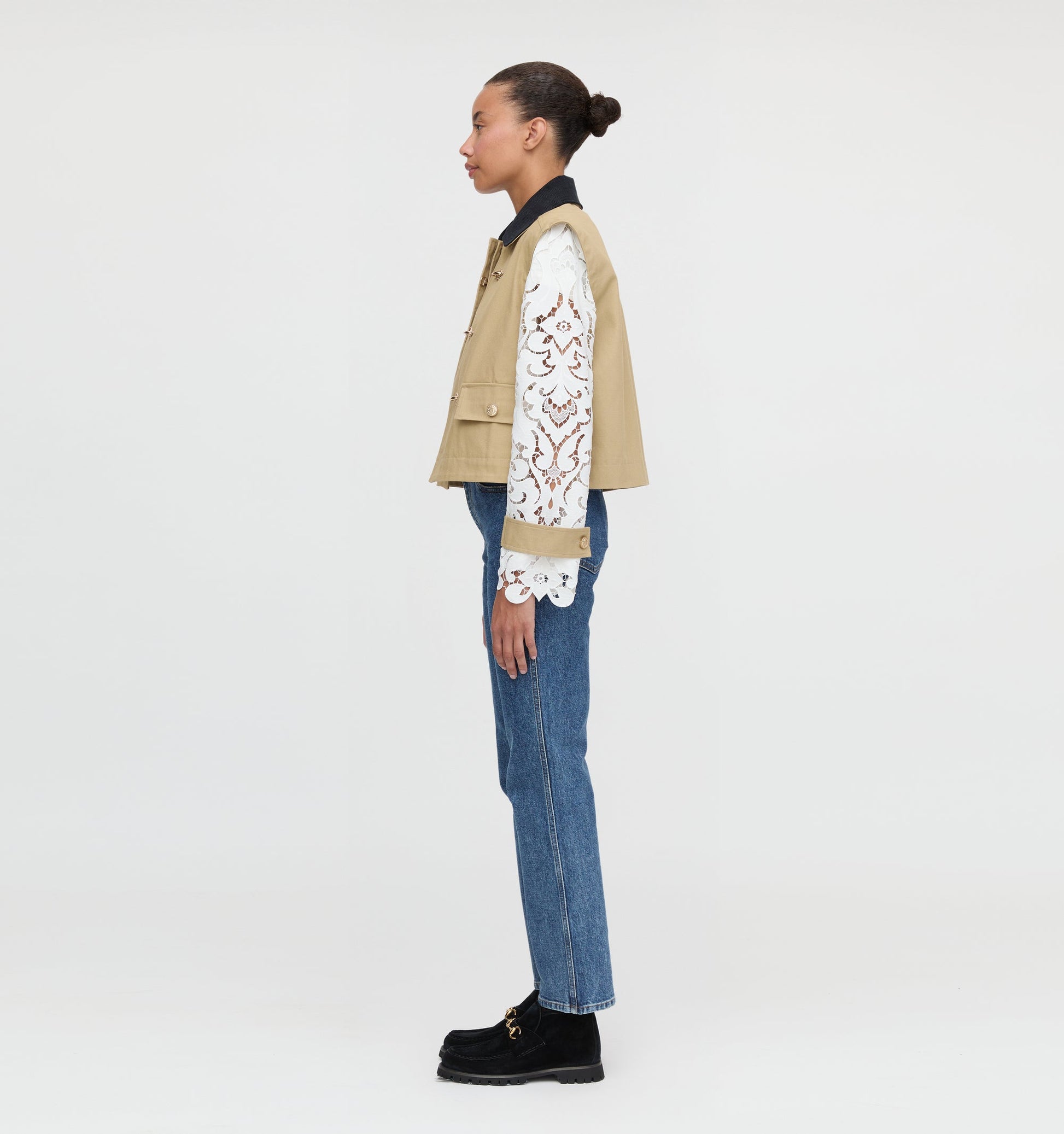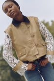 Beige and Lace Long-sleeved Paneled Work Jacket