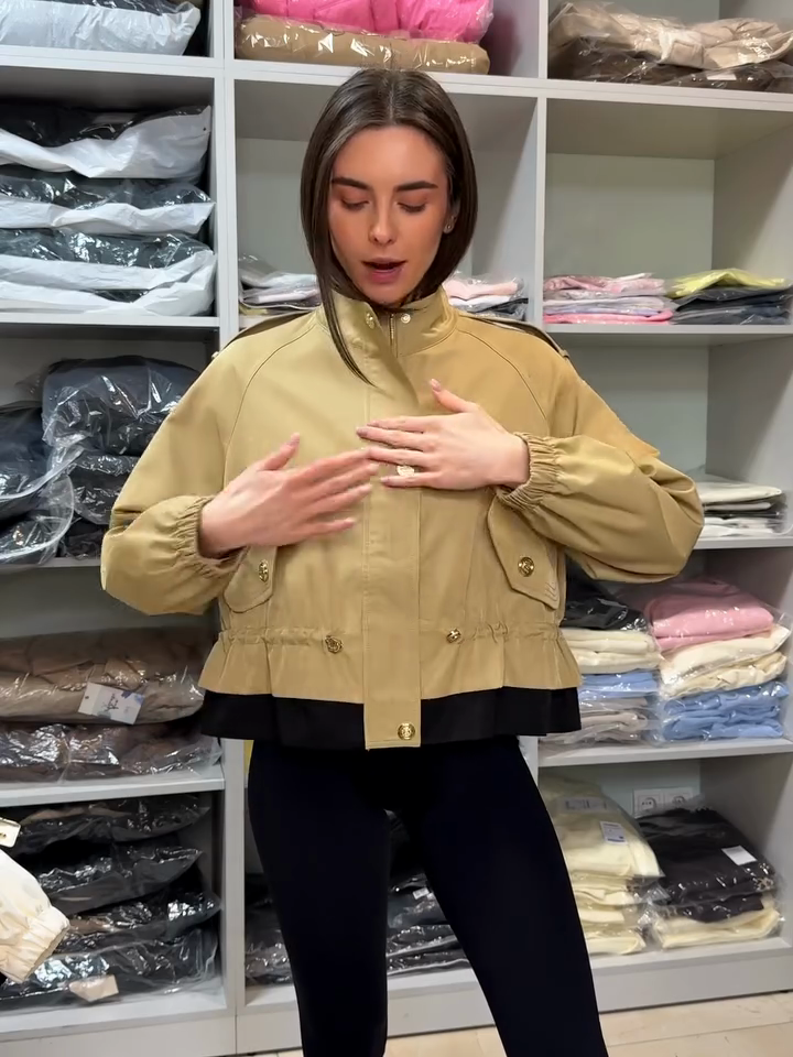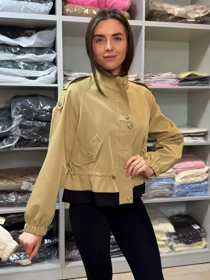 Beige Cropped Jacket with Gold Buttons