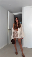 Beige Embroidered Shirt and Patterned Mini Skirt Set