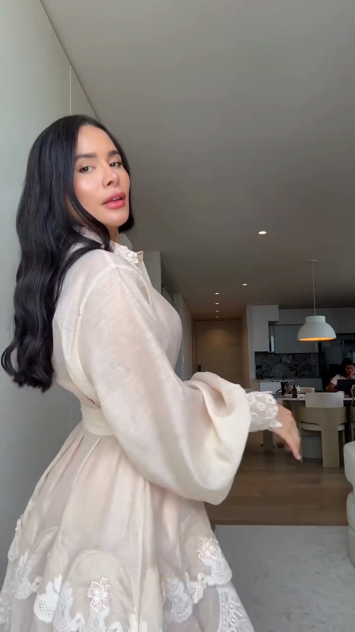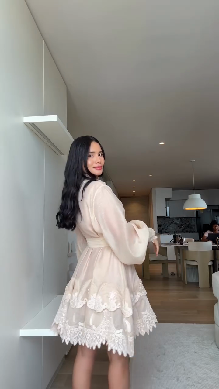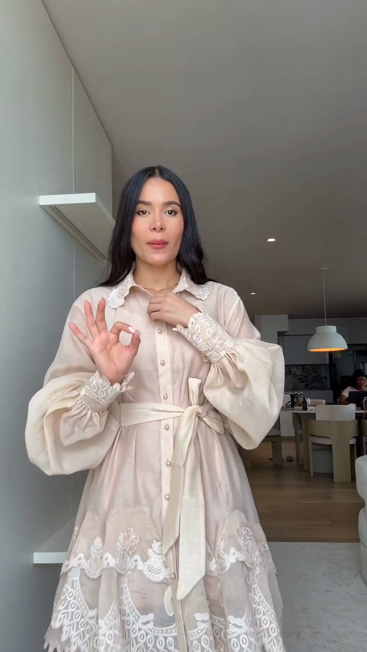 Beige Embroidered Shirt Dress with Belt