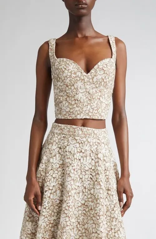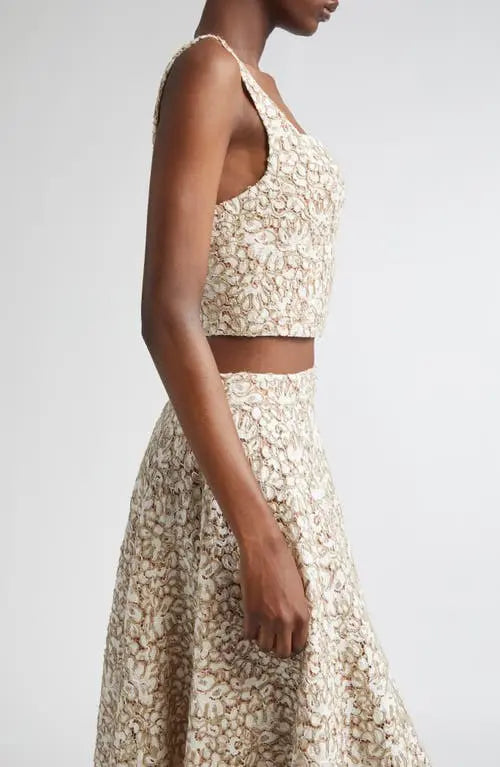 Beige floral lace two-piece set