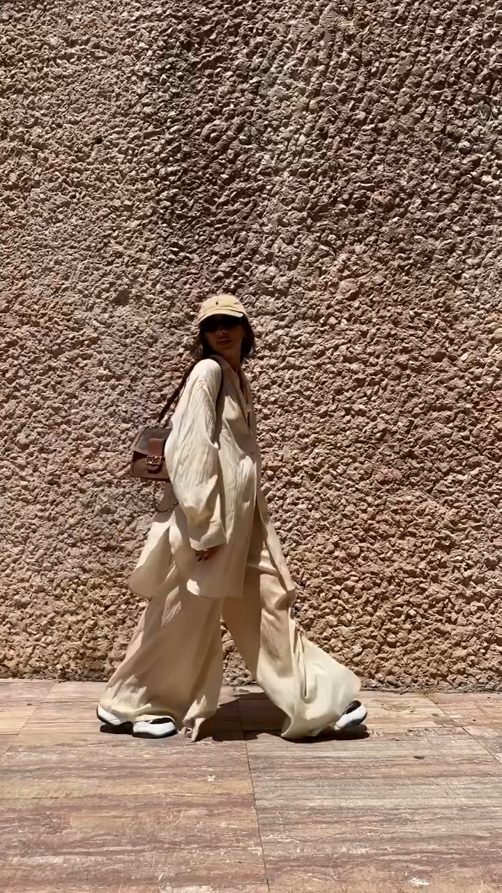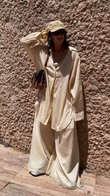 Beige Oversized Shirt and Wide Leg Pants Set