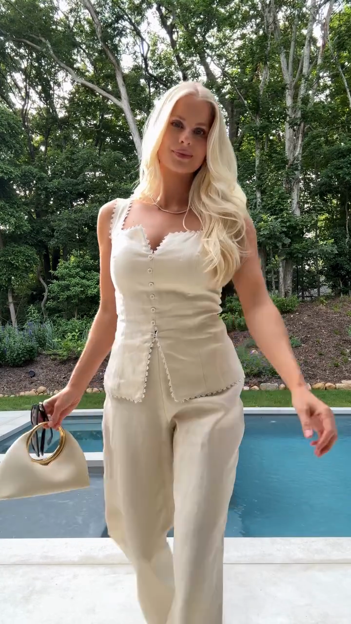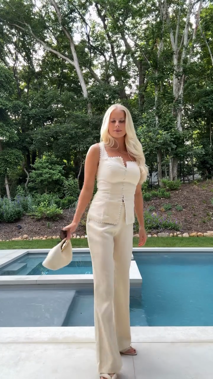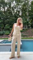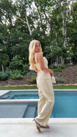 Beige Sleeveless Cropped Top and Wide - leg Pants Set