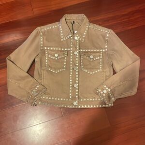 Beige Studded Denim Jacket