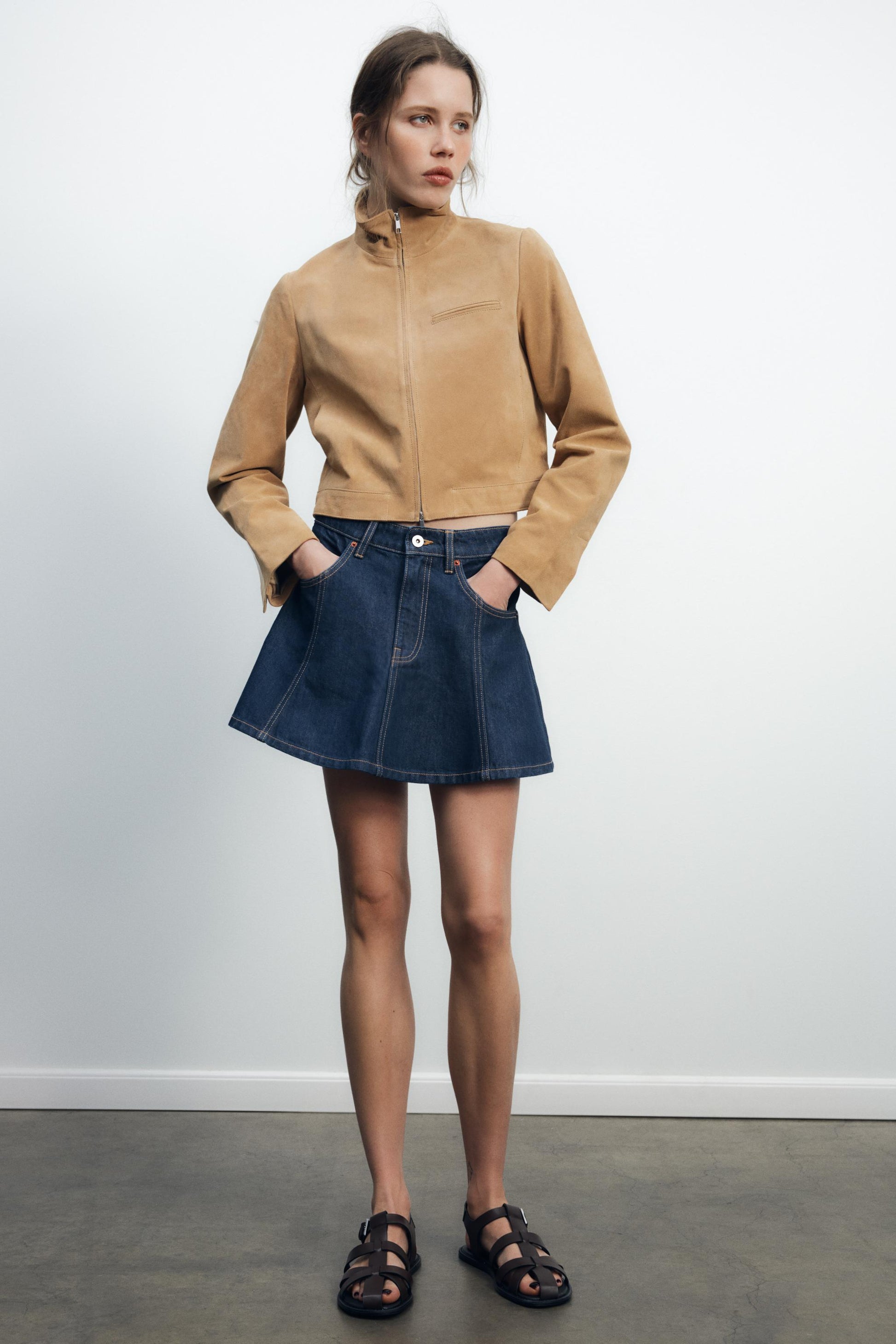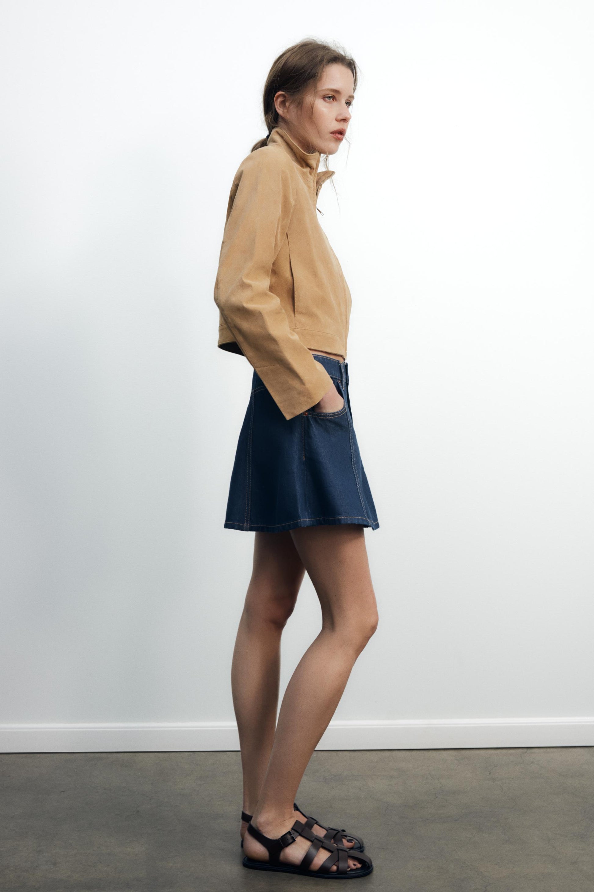 Beige Suede Cropped Jacket