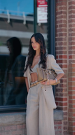 Beige three-piece suit (including cropped top)