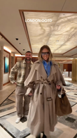 This beige trench coat is a classic piece, featuring a double-breasted design, a belted waist, and wide lapels for an elegant and refined look. Pair it with a blue shirt for a stylish, sophisticated look perfect for any occasion.