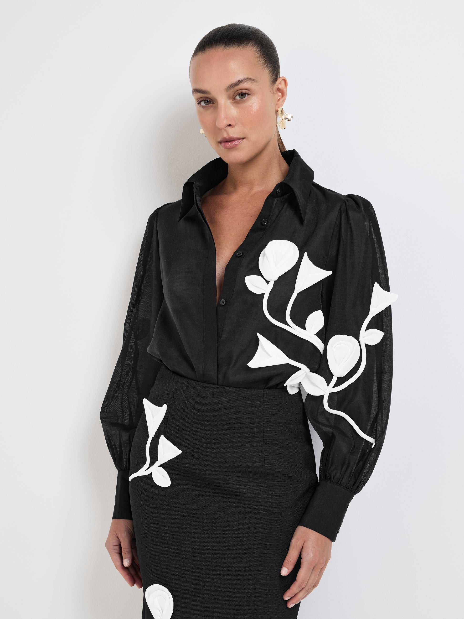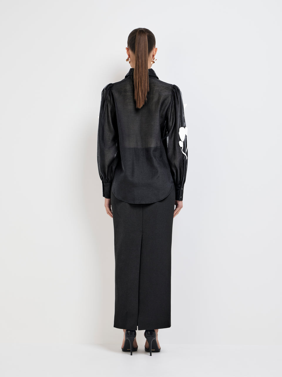 Black and White Floral - Applique Shirt & Maxi Skirt Set