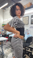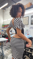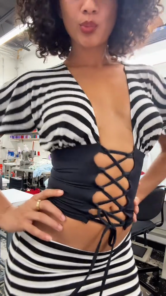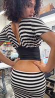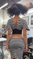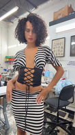 Black and White Striped Deep V - Neck Set with Lace - Up Corset Detail