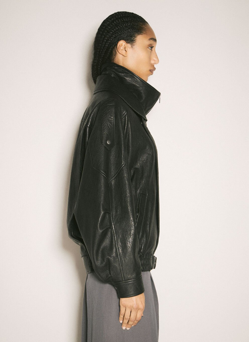 Black Asymmetric Leather Jacket with Belt