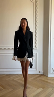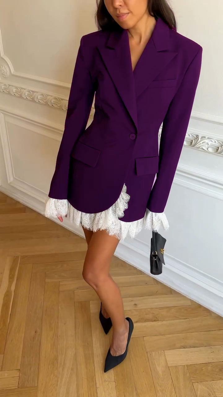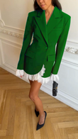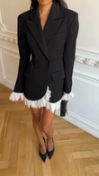 Black Blazer Dress with White Lace Trim