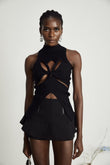 Black Cut - Out Twist - Front Ribbed Top & Skort Set
