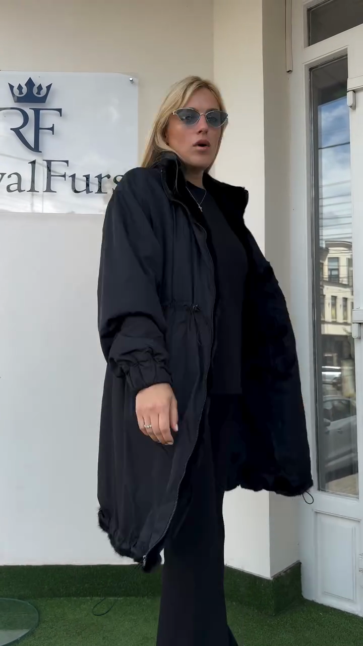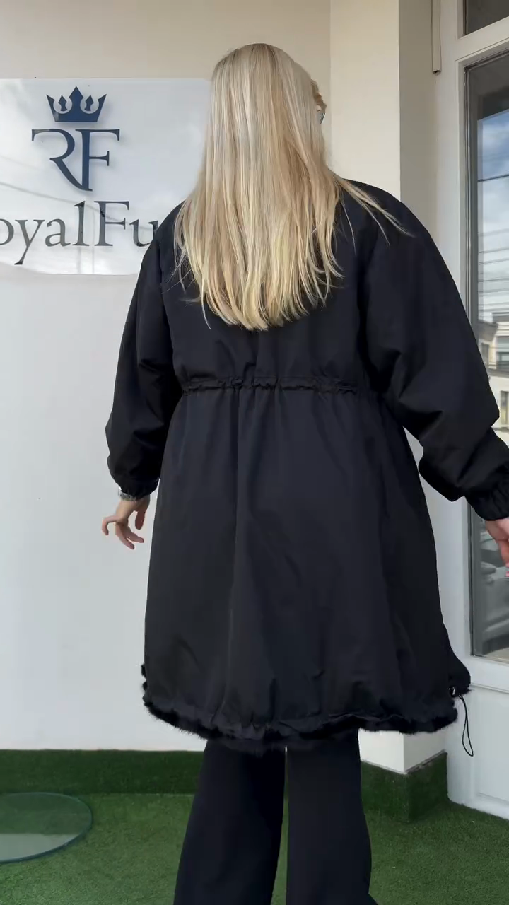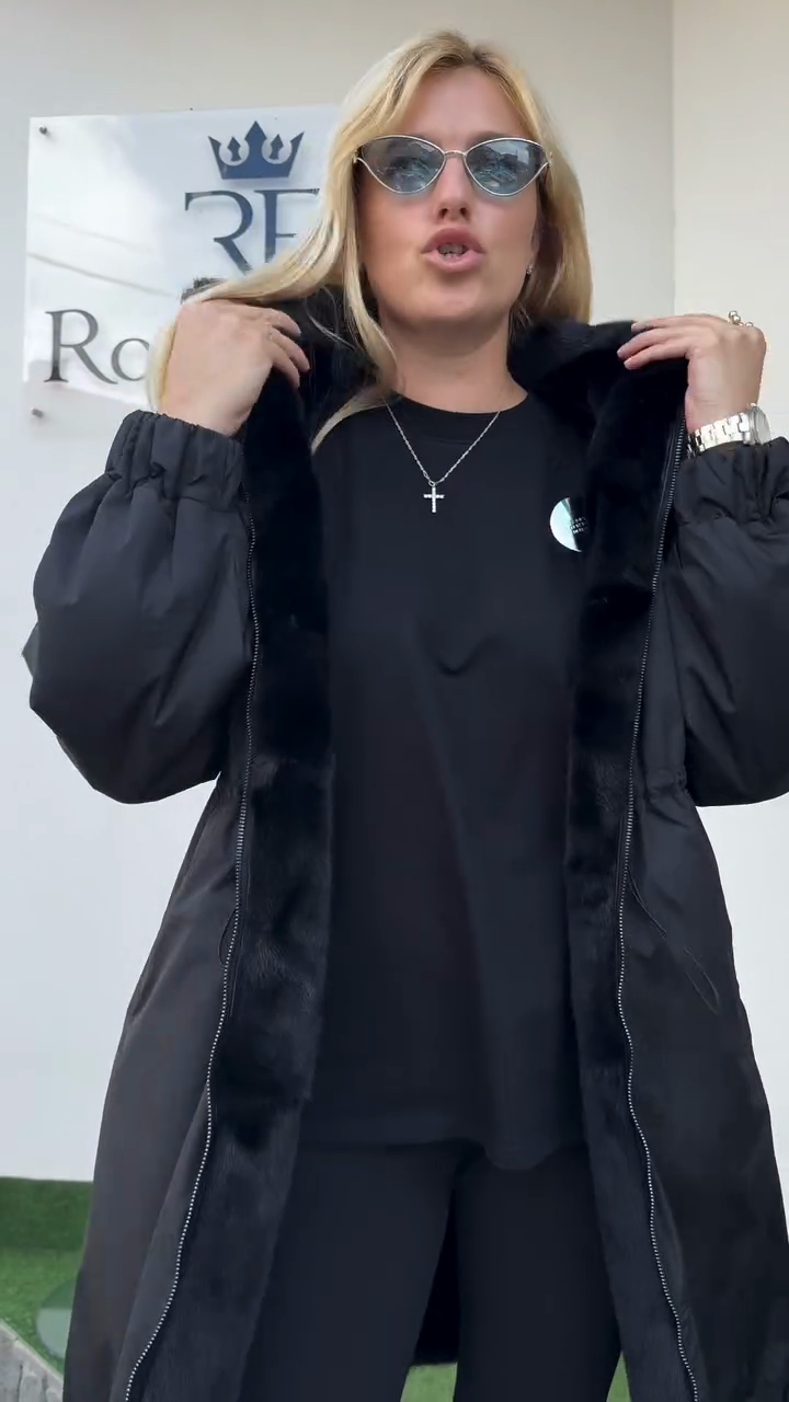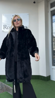 Black Faux Fur Reversible Coat with Oversized Silhouette