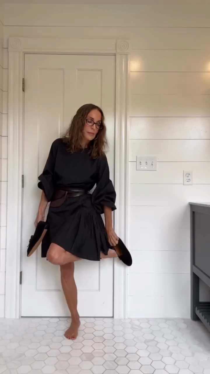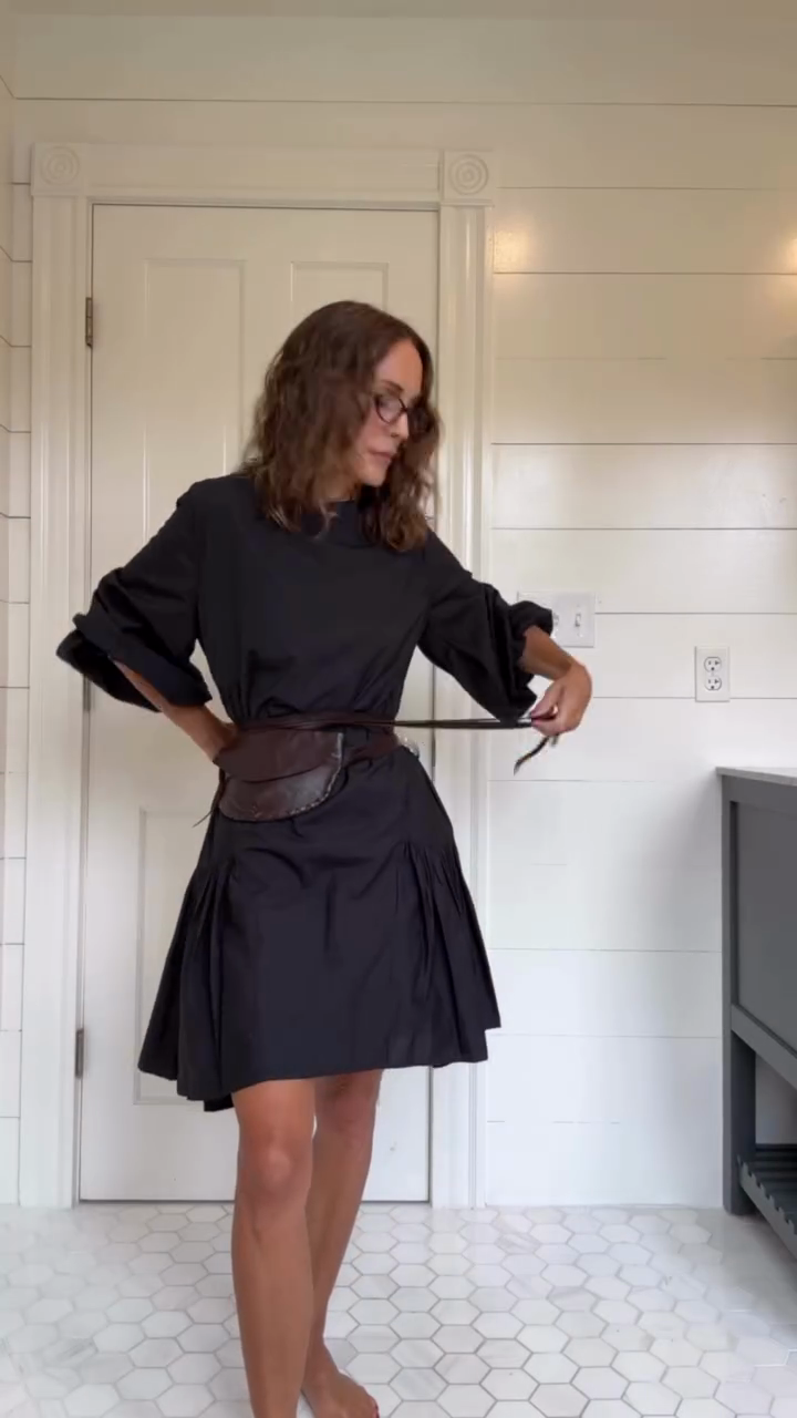 Black Flared Mini Dress with Belt