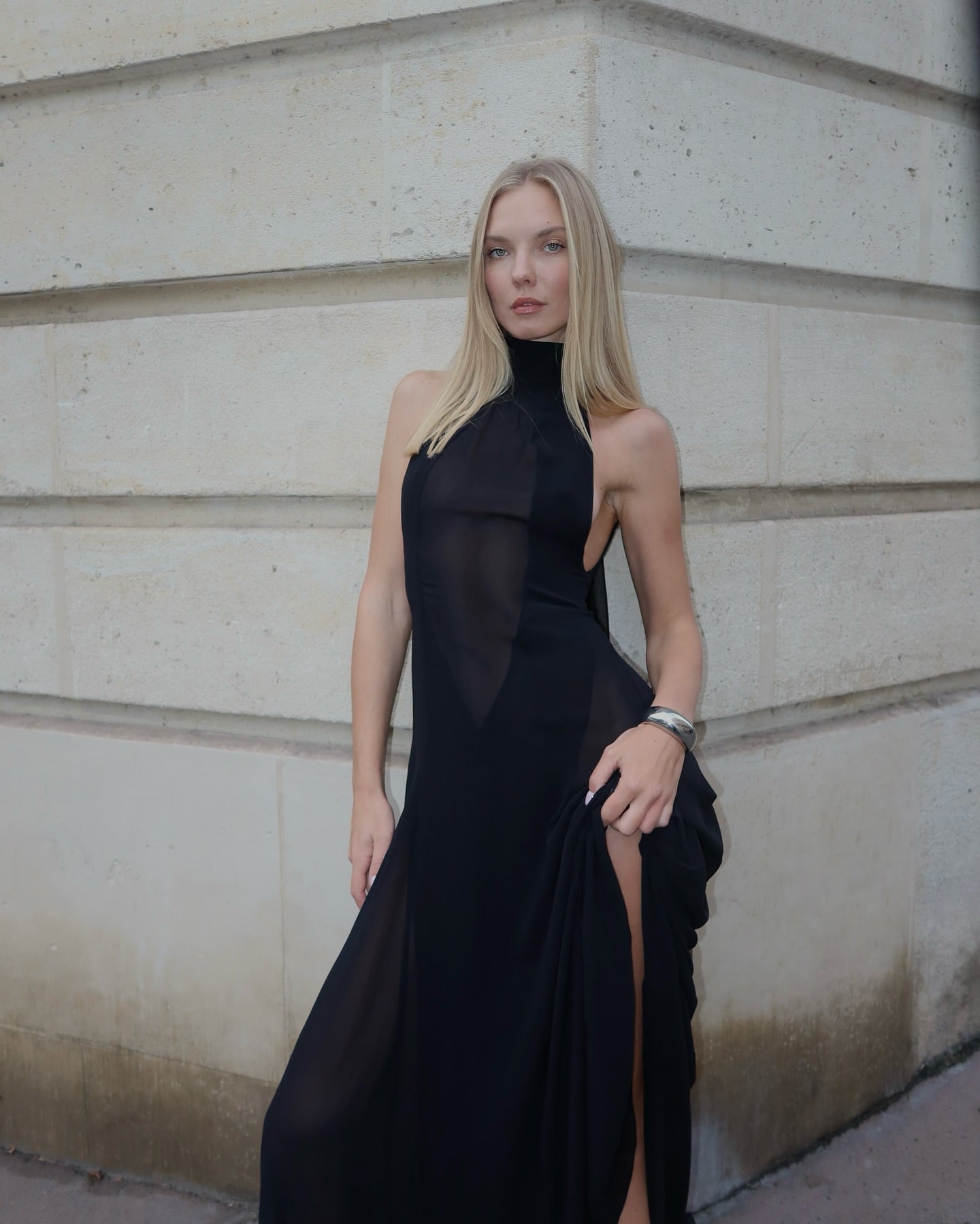 Black Halter Neck Sheer Maxi Dress