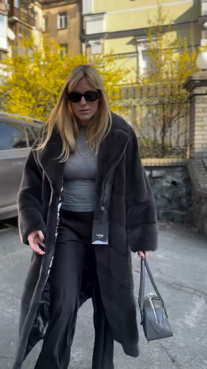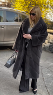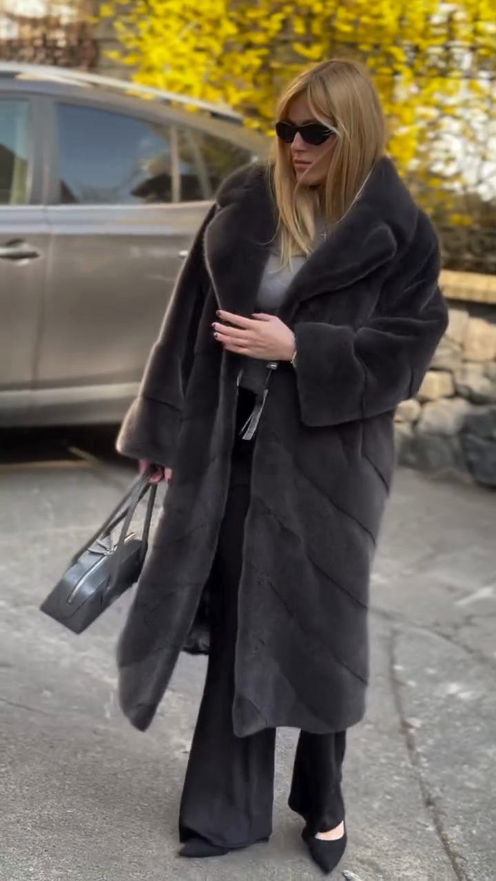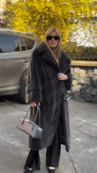 Black Herringbone - Patterned Fur Coat