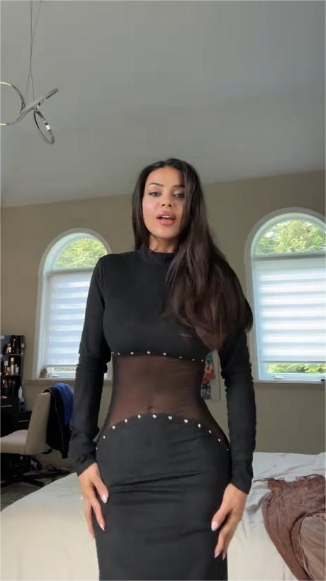 This black maxi dress features alluring mesh panels on the sides and is embellished with studs for an edgy, sexy look. The high neckline and long sleeves complement the lightweight mesh fabric, creating a refined and elegant look. The slim-fitting silhouette and high slit elongate the figure, making it ideal for evening events, parties, or special occasions. Pair it with simple heels and delicate jewelry to make this dress the centerpiece. Add a leather jacket for a casual and chic look.