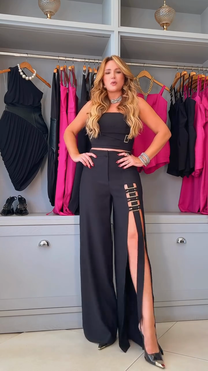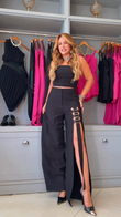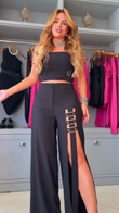 Black off-the-shoulder Cropped Top and Wide-leg Pants Set