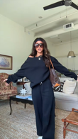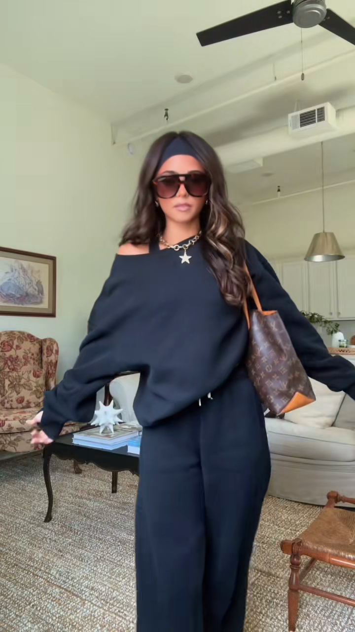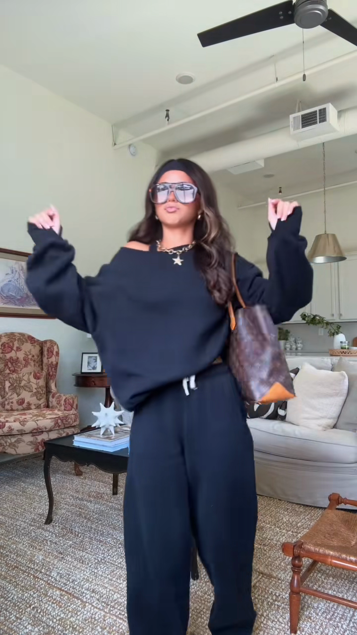 Black Off - the - Shoulder Sweater and Wide - Leg Pants Set