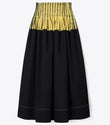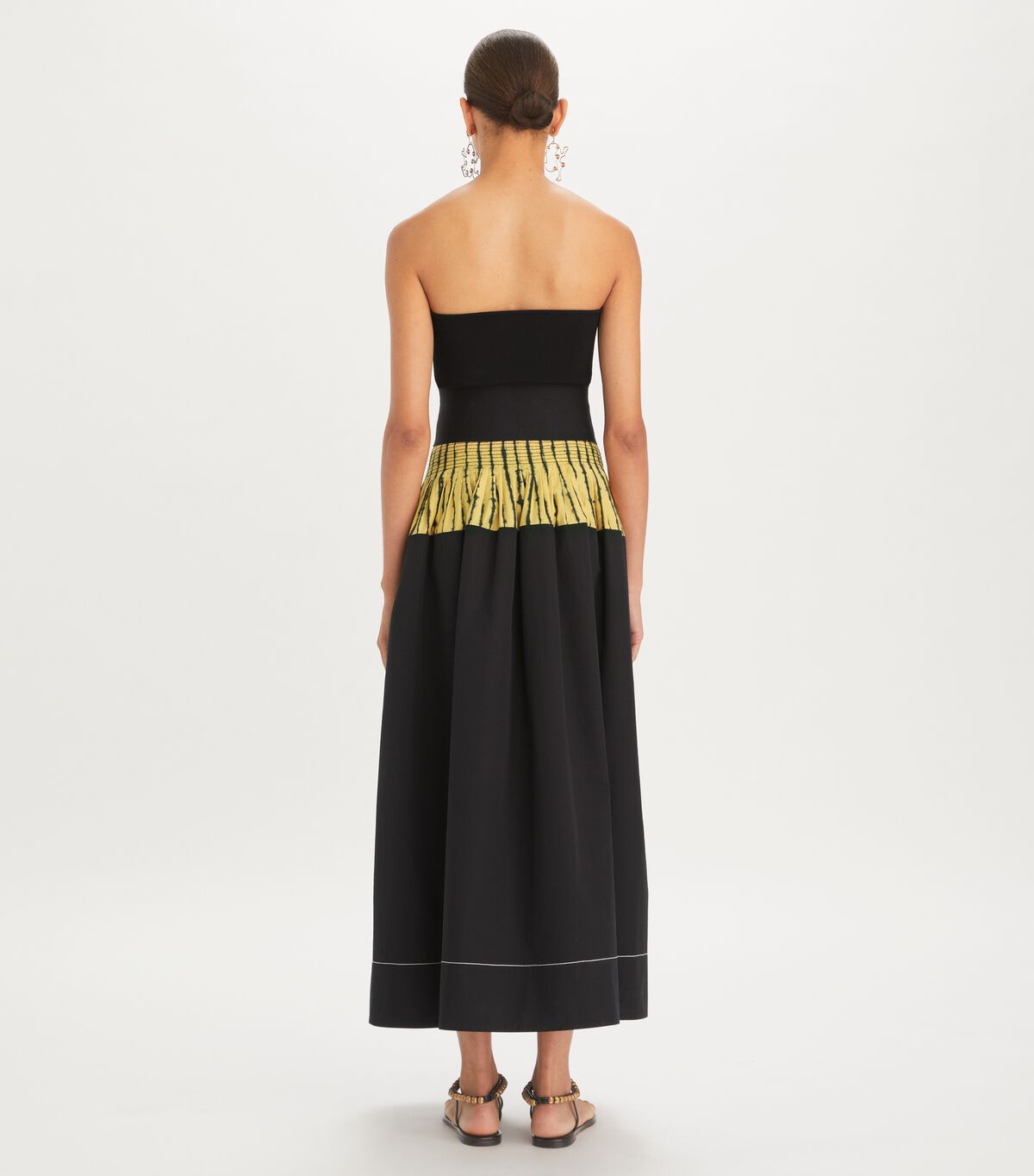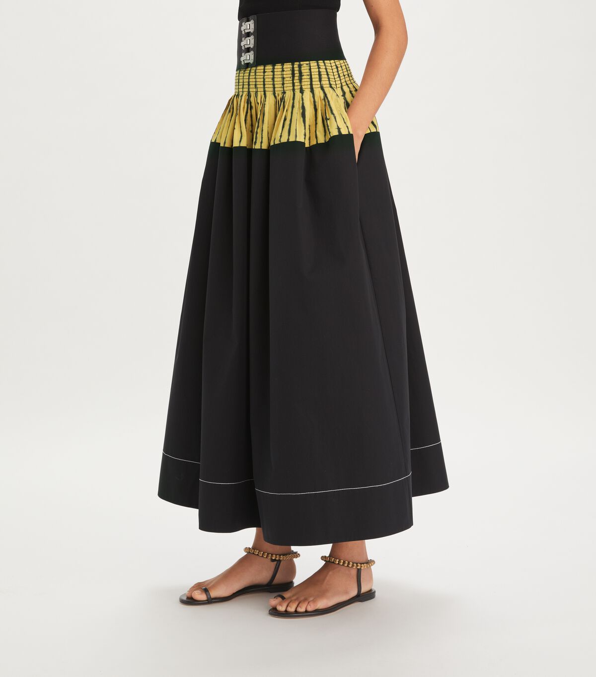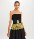 Black One - Shoulder Dress with Yellow Striped Waistband