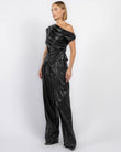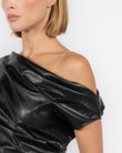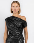 Black One - Shoulder Faux Leather Top & Wide - Leg Pants Set