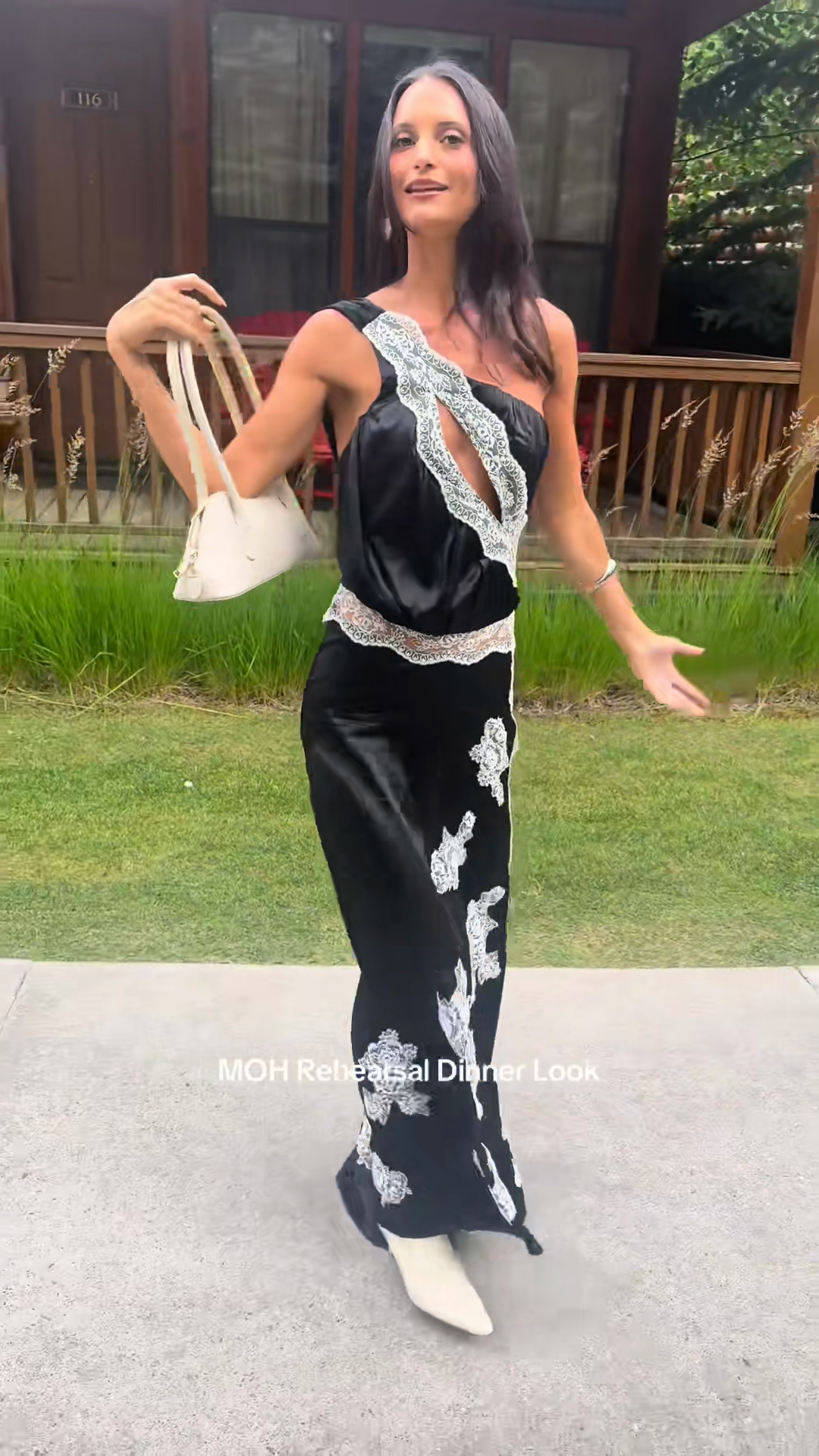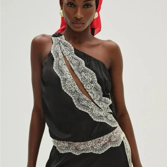 Black One - Shoulder Lace - Embellished Maxi Dress