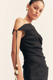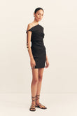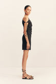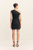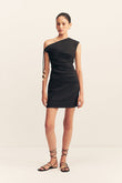 Black One - Shoulder Ruched Mini Dress with Side Tassel
