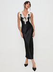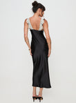 Black Satin Midi Dress with Lace Trim