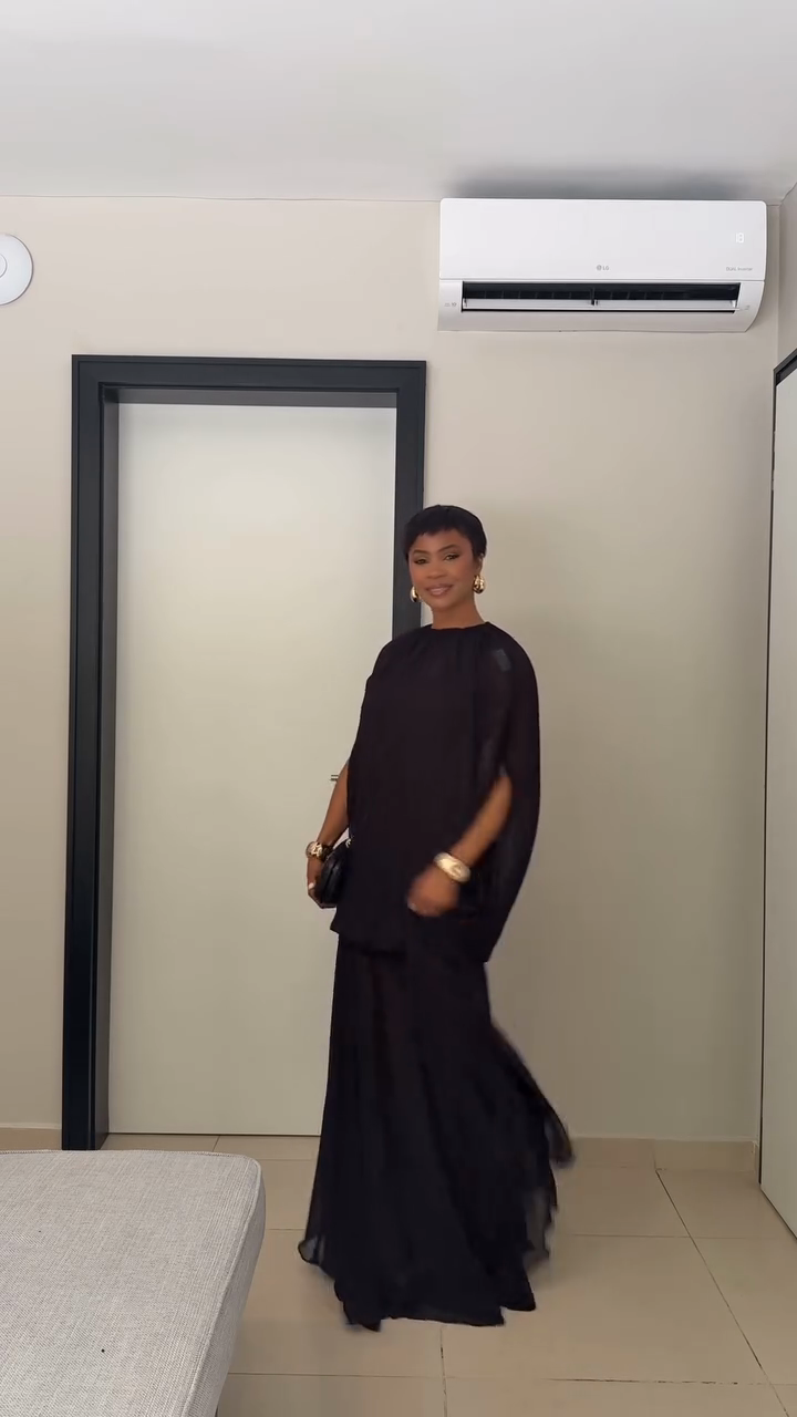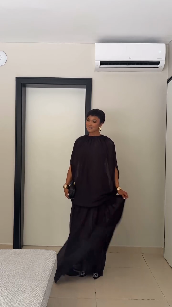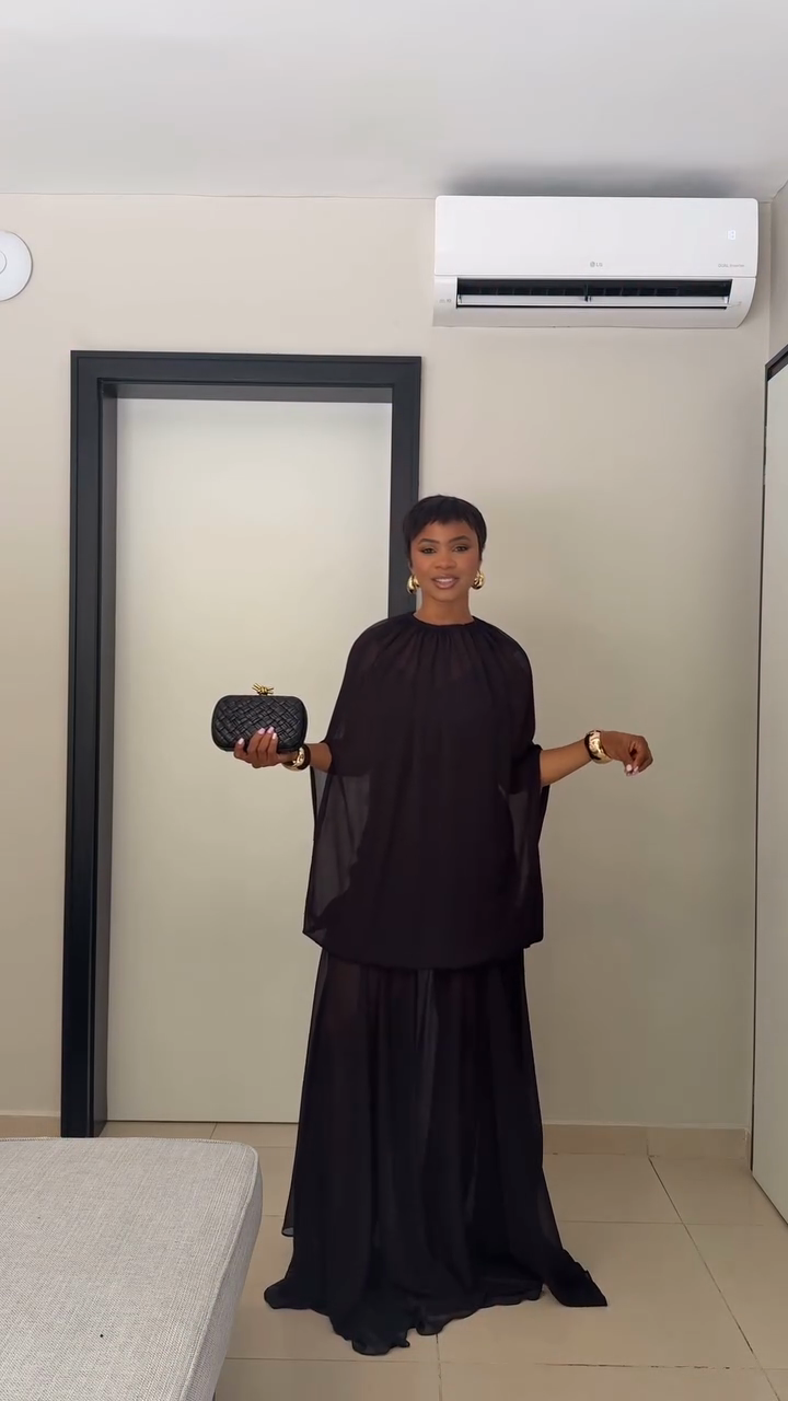 Black Sheer Cape - Style Top and Maxi Skirt Set