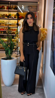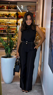 Black Sleeveless Top and Contrast - Stitched Wide - leg Pants Set