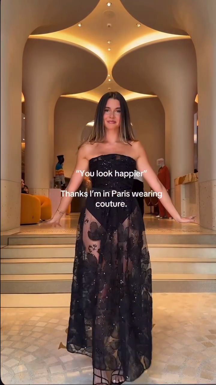 Black Strapless Embroidered Sheer Maxi Dress