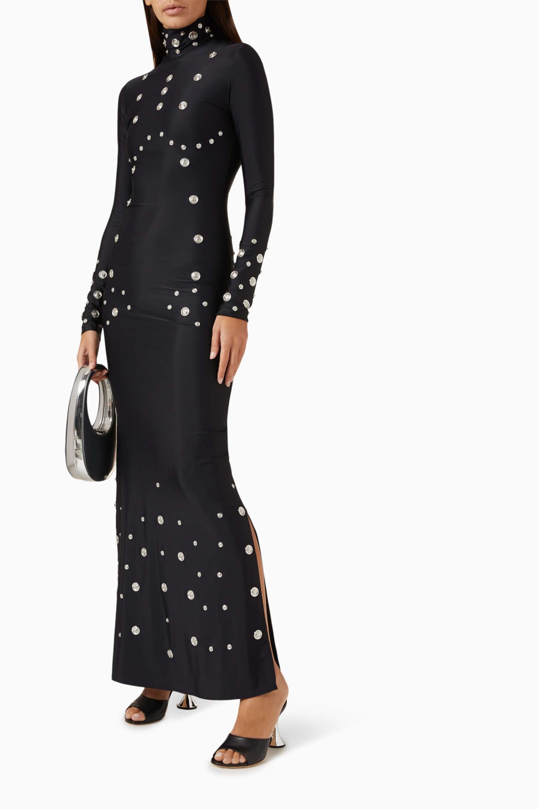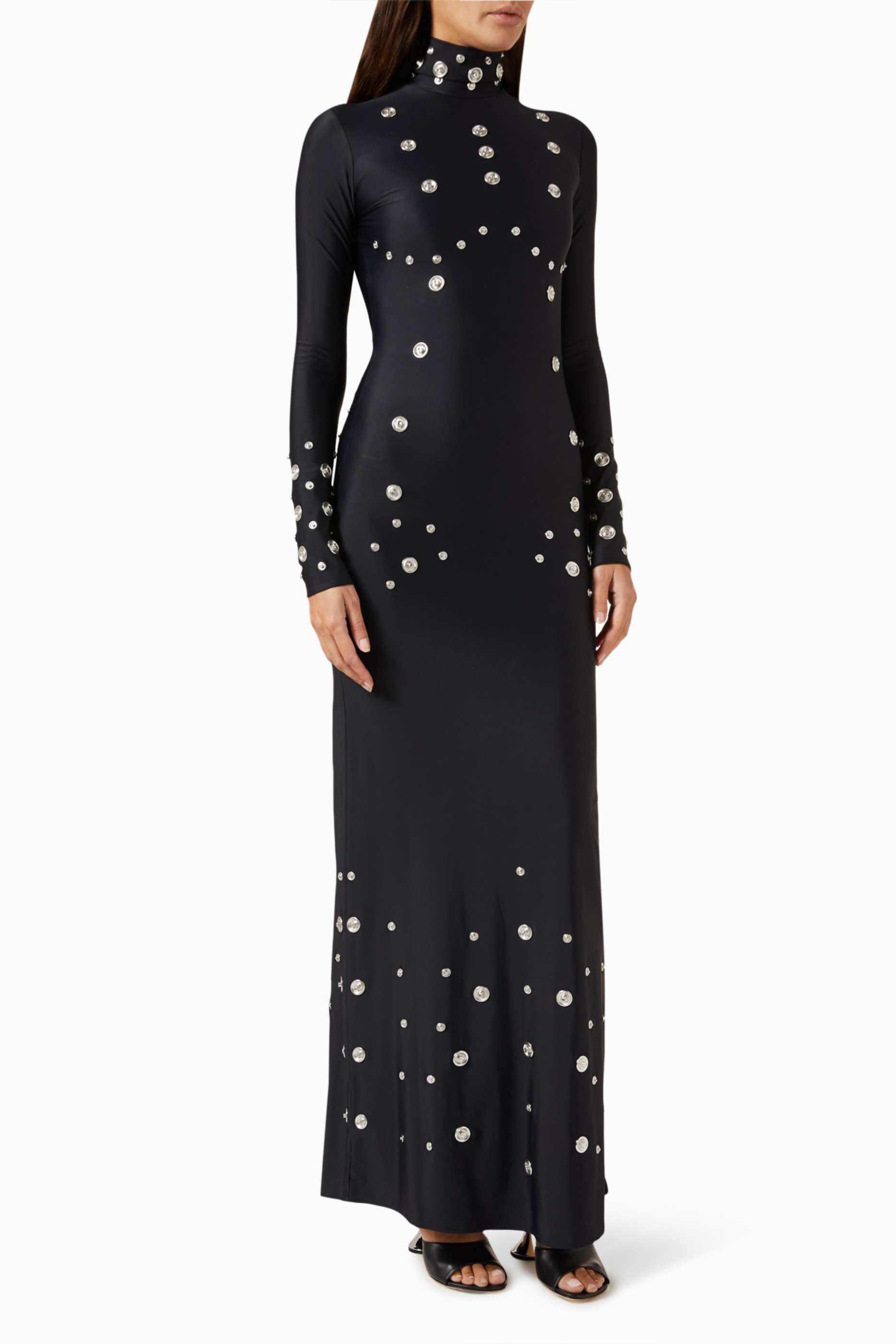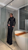 Black Stud - Embellished Long - Sleeve Maxi Dress