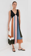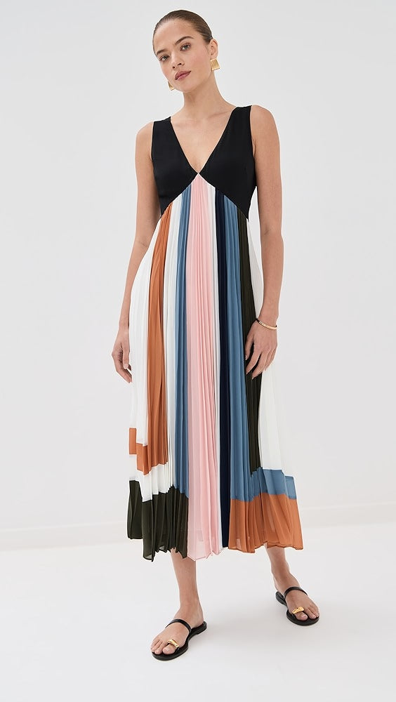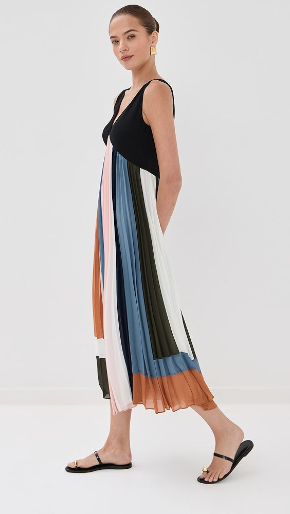 Black - Topped Color - Block Pleated Midi Dress
