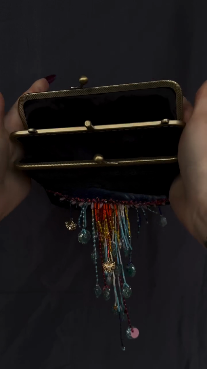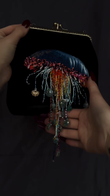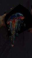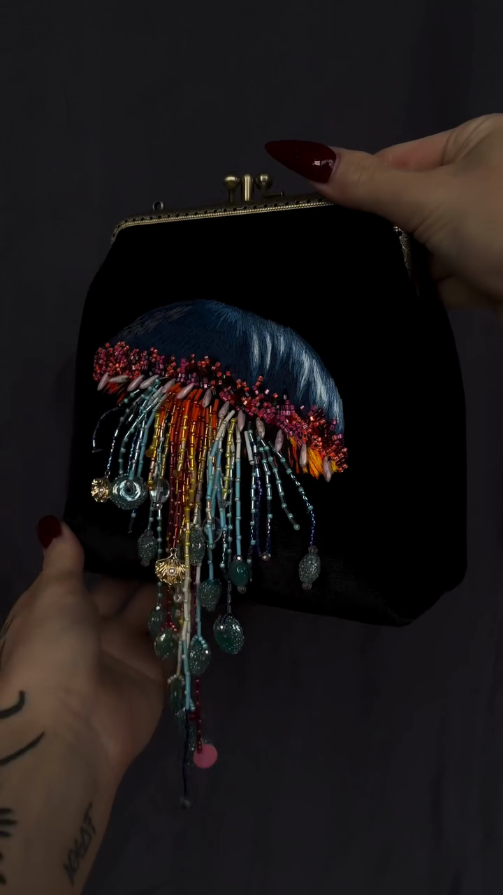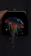 Black Velvet Clutch Bag with Jellyfish Embellishment