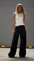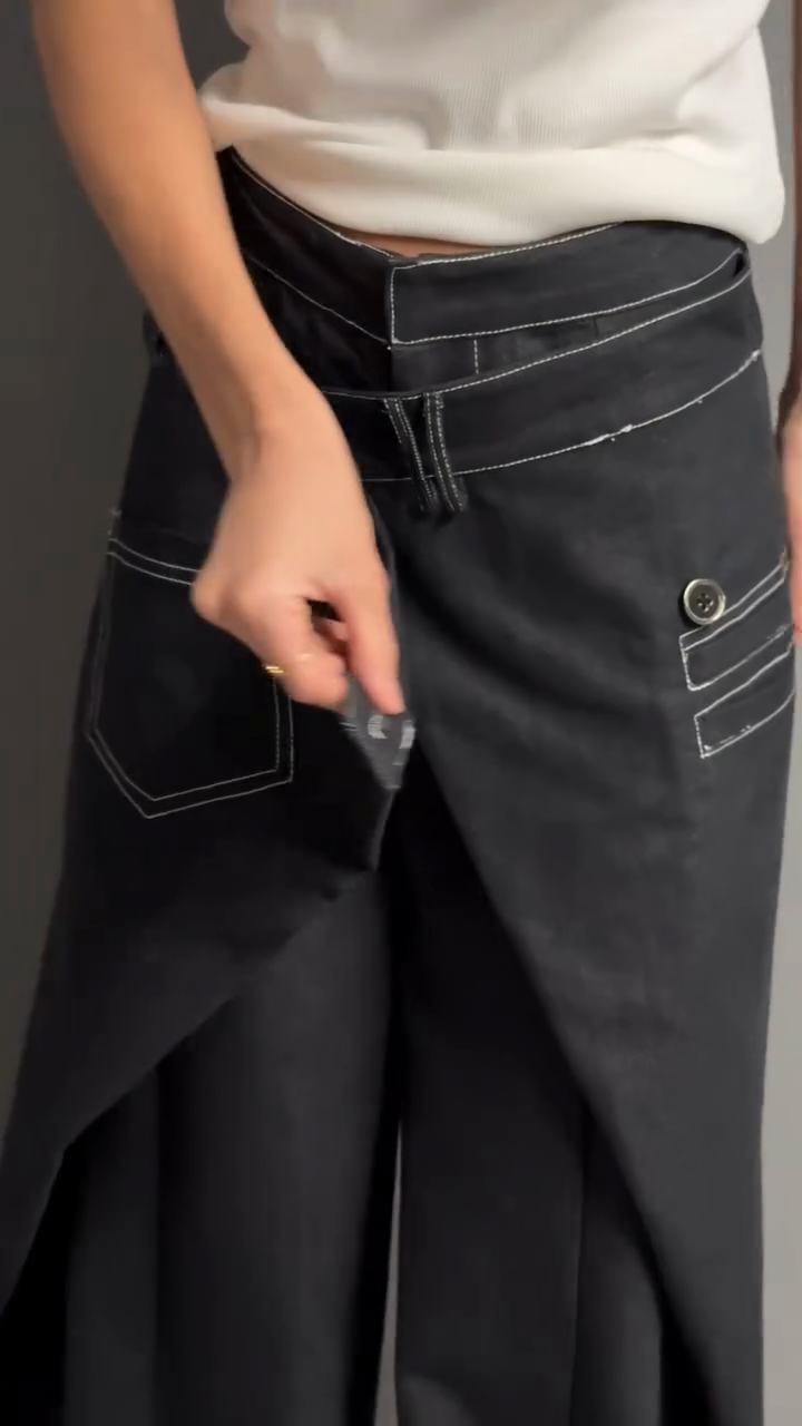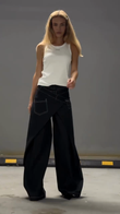 Black Wide - leg Pants with White Stitching Detail