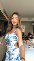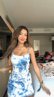 This is a sleeveless mini dress featuring a classic blue - and - white color scheme with exquisite floral patterns, reminiscent of blue and white porcelain. The front has a simple square neckline design that highlights the neck line. The back boasts a bold open - back design, adding a touch of sexiness and fashion, which makes the overall look more eye - catching. From the appearance, the fabric may have sequin or bead elements, which can shimmer under light and enhance the dress's magnificence. The overall texture is quite stiff, allowing it to shape a slim fit well while not losing a certain level of comfort. It is suitable for occasions such as parties, dates, or summer fashion events. Paired with a pair of high - heels in the same color family and simple gold jewelry, it can highlight an elegant and charming temperament; if matched with personalized earrings and a clutch, it will have a more fashionable party atmosphere.