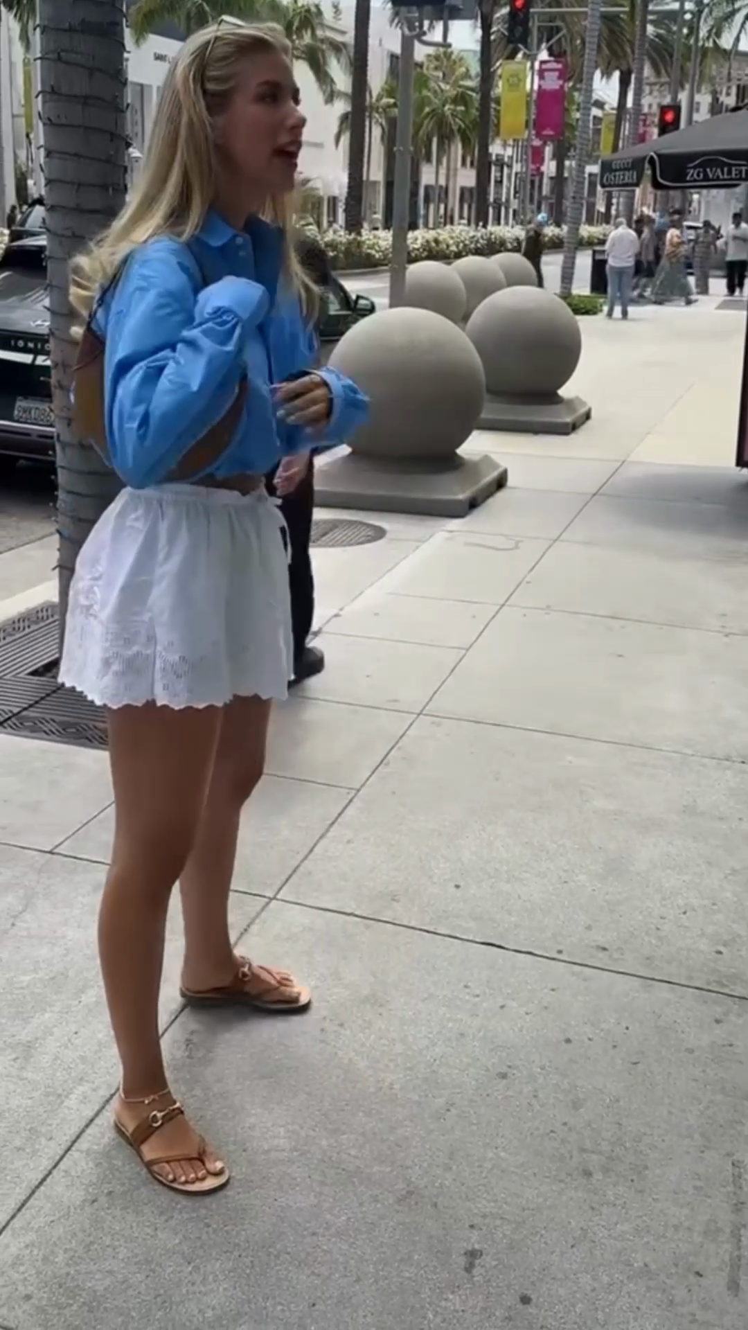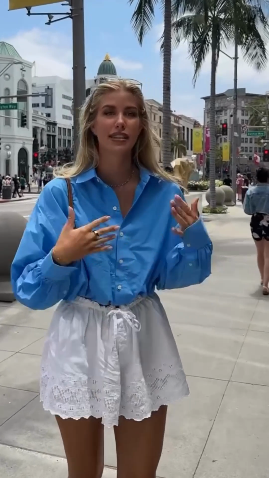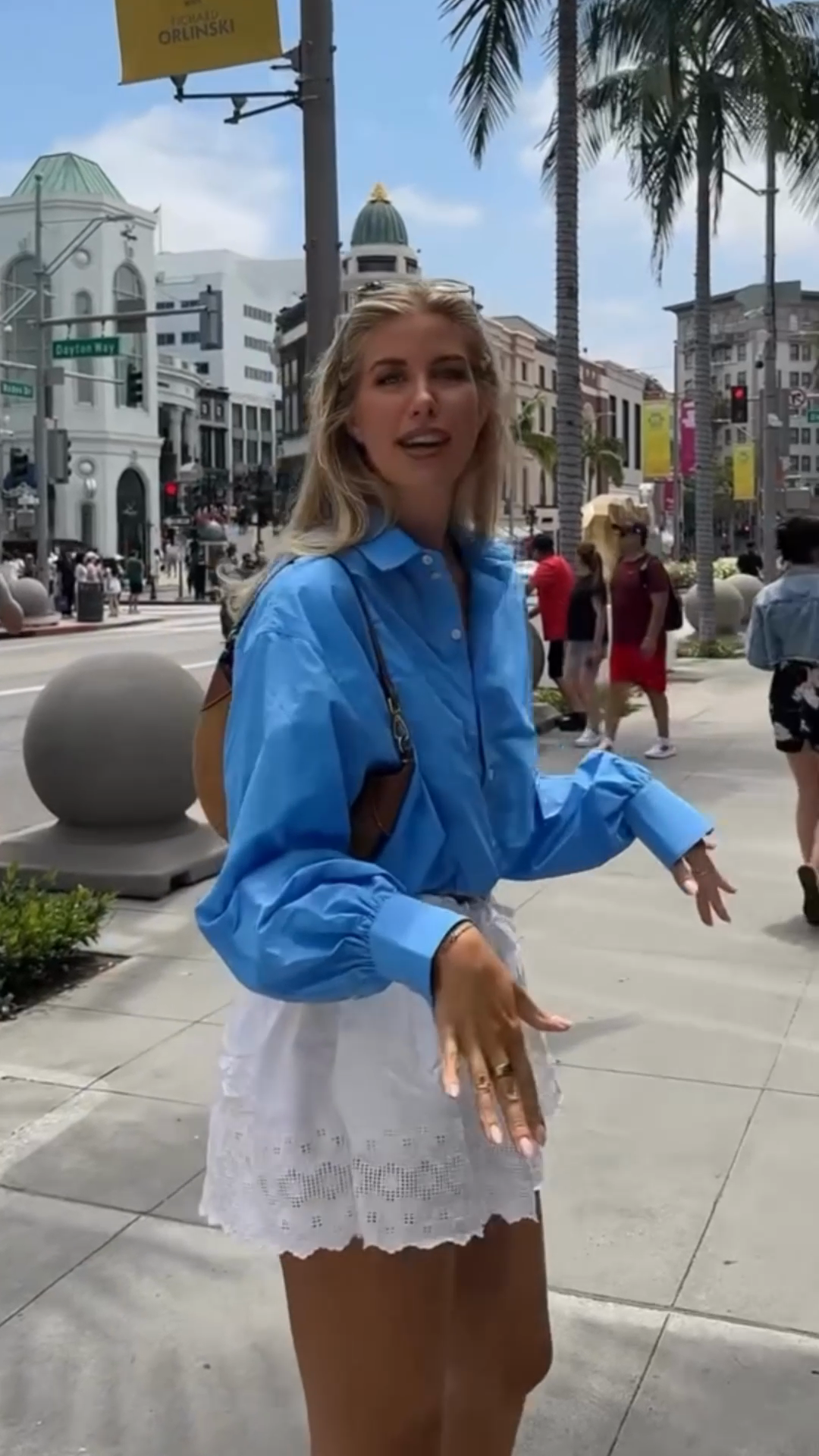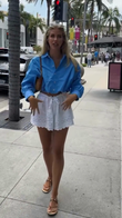 Blue Cropped Button - Down Shirt with White Embroidered Shorts