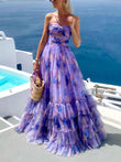 Lavender Chiffon Tiered Maxi Dress with Backless Design