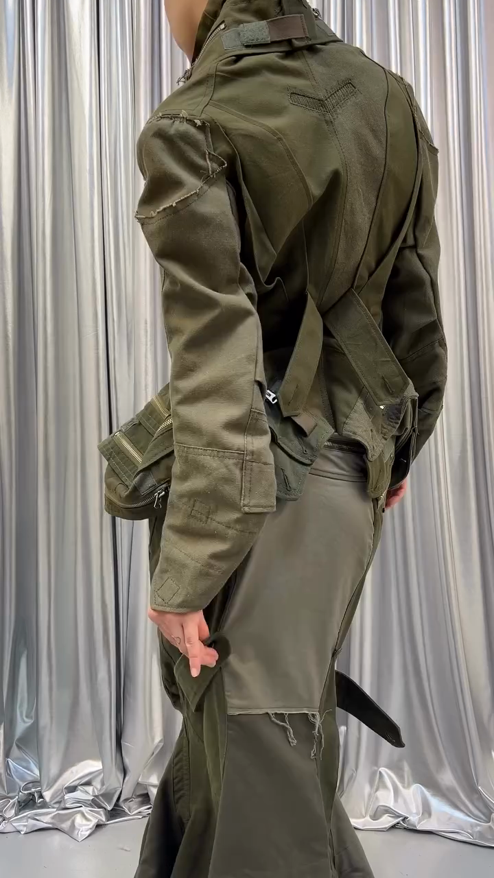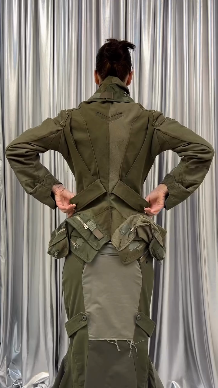 Olive Green Structured Jacket and Mermaid - Skirt Set