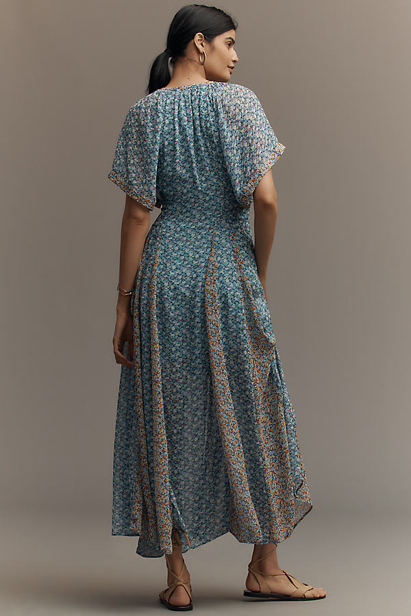 Blue Floral Button - Front Maxi Dress