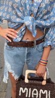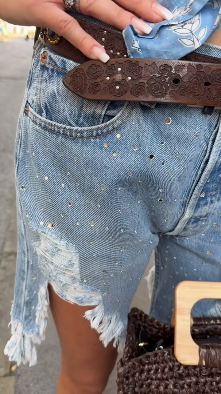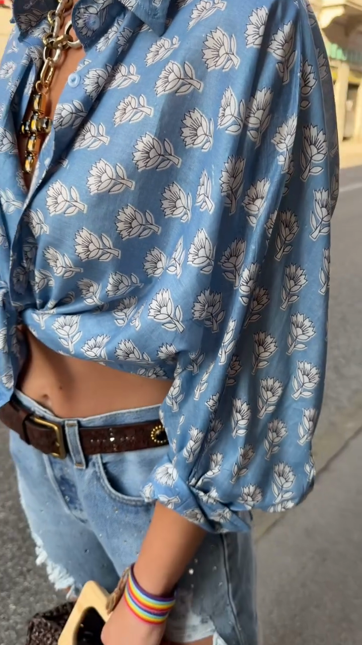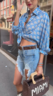 Blue Floral Shirt And Distressed Denim Shorts Set