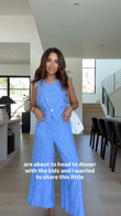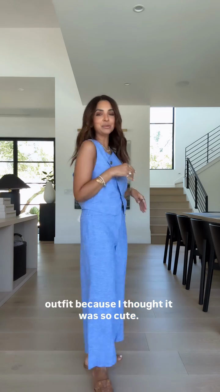 Blue Linen Sleeveless Vest and Wide - Leg Pants Set
