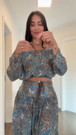 Blue Paisley Off - Shoulder Crop Top & Maxi Skirt Set