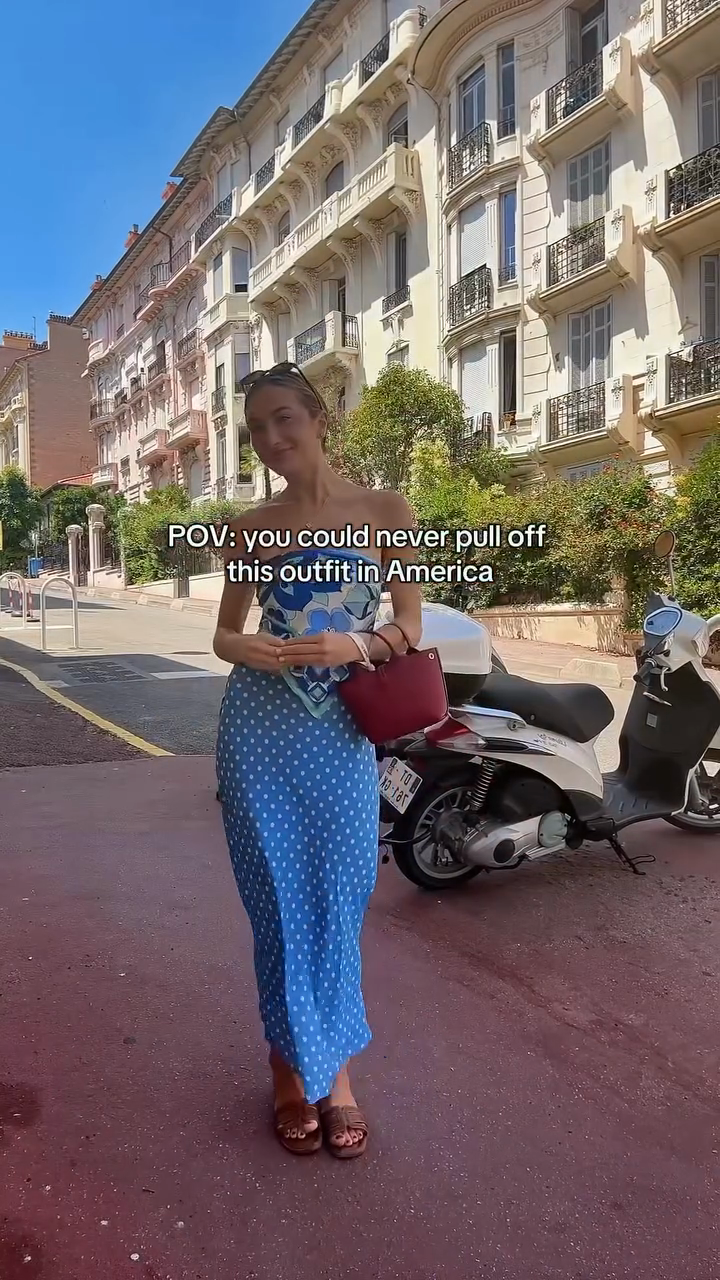 Blue Polka Dot Maxi Skirt and Off-Shoulder Printed Top Set