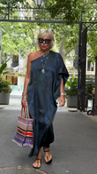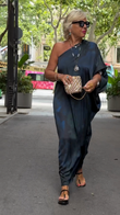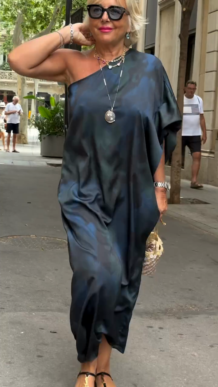 Blue Tie - Dye One - Shoulder Maxi Dress