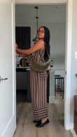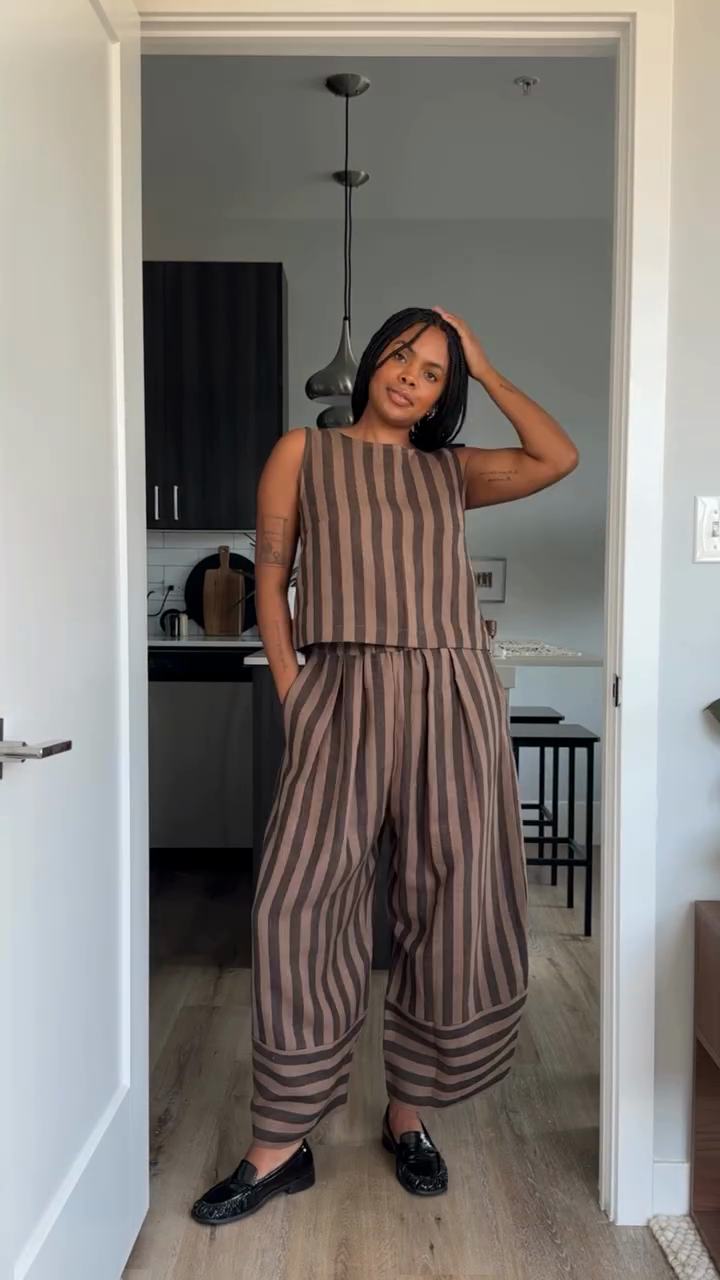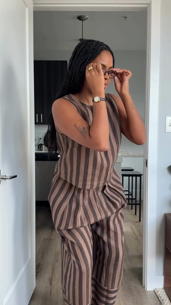 Brown and Black Striped Sleeveless Top and Wide - leg Pants Set