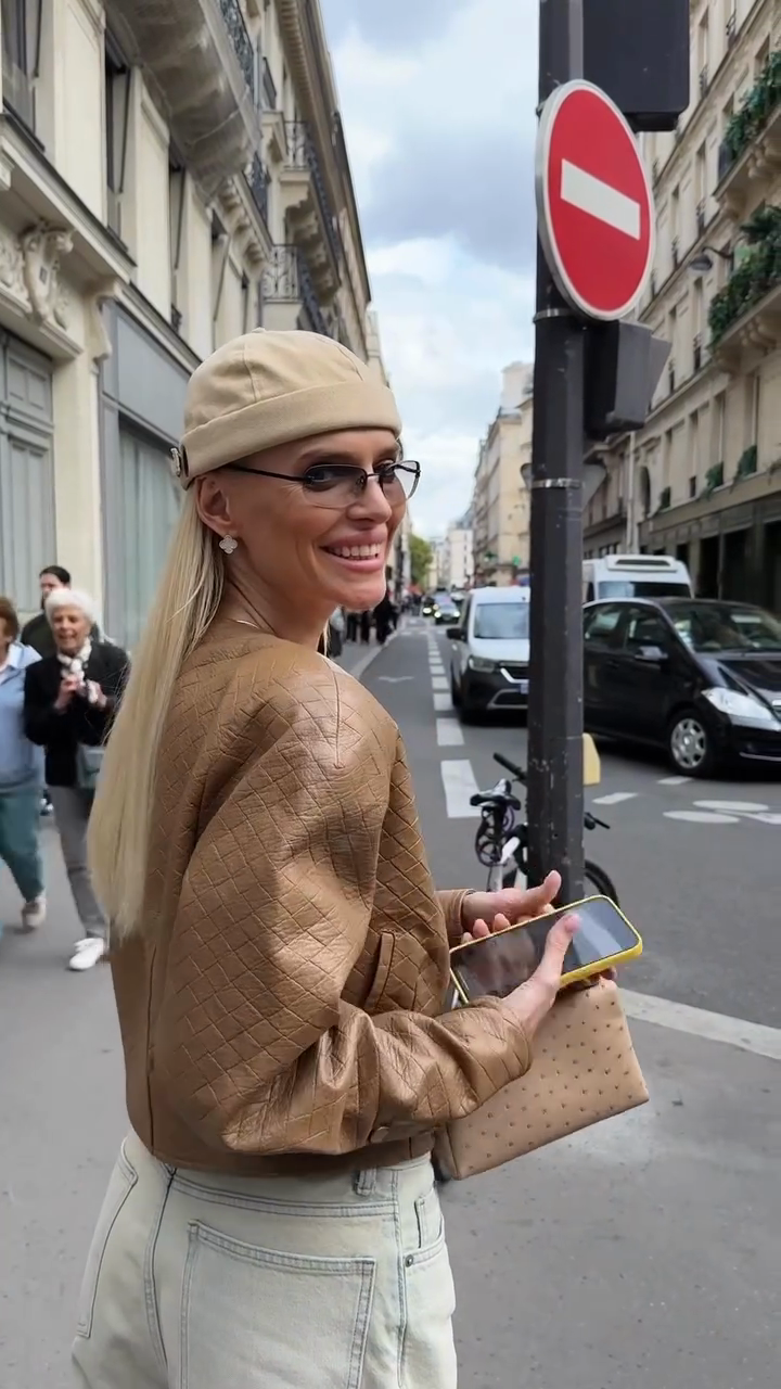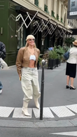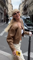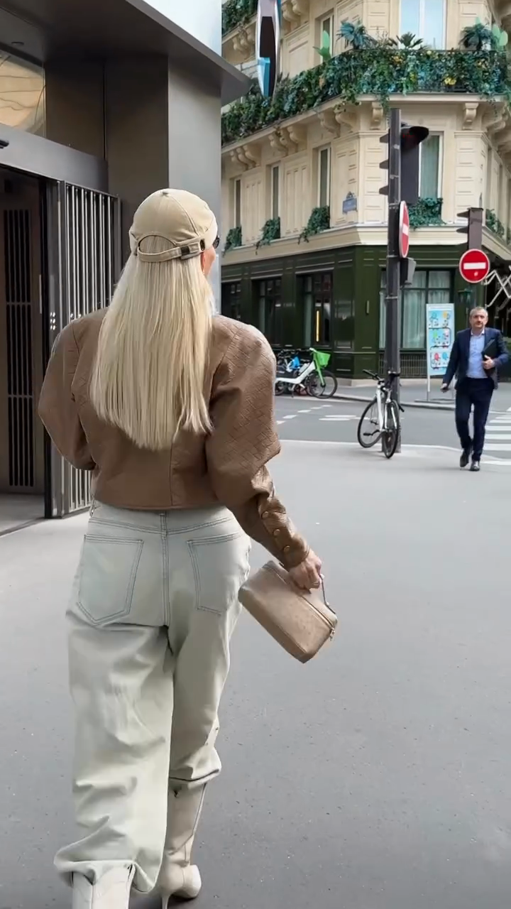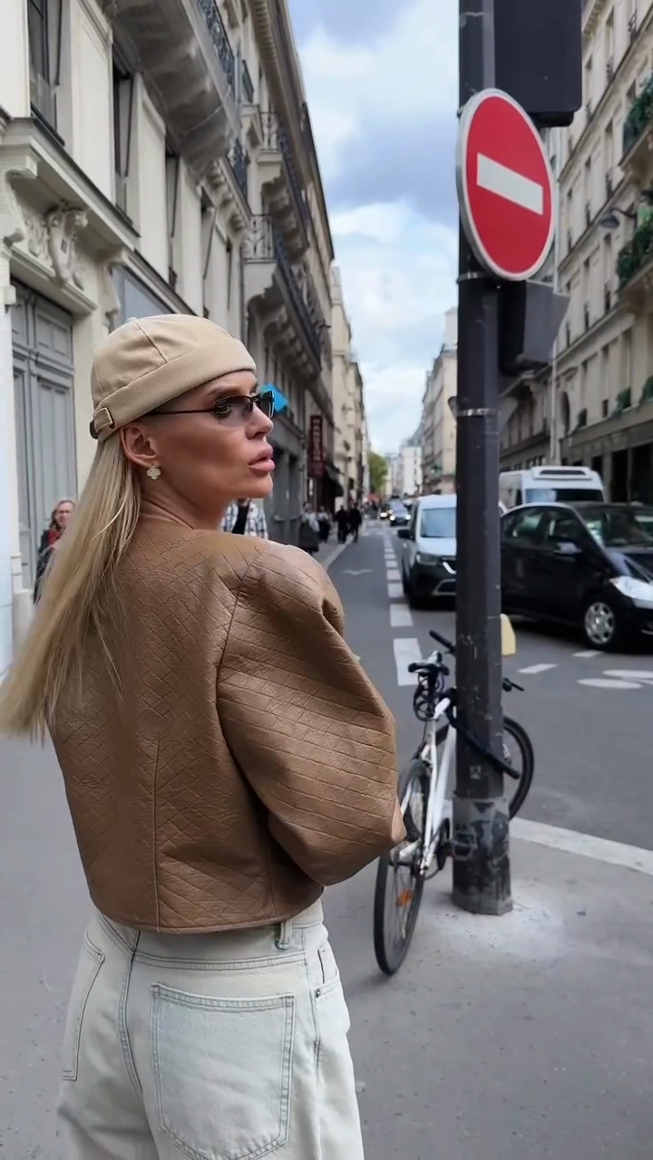 This brown cropped leather jacket offers a classic yet stylish design. The quilted texture adds a touch of sophistication, while the cropped cut lends it a modern, sleek silhouette. Pair it perfectly with light-colored, high-waisted jeans, as shown, for a more elongated look. It's perfect for casual outings, streetwear looks, or adding an edgy touch to more feminine outfits. Made from premium leather, it's durable and comfortable. The front button closure allows for easy adjustment and customization.